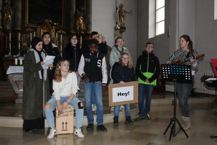 Für den dritten Advent als Abschluss des Weihnachtsmarktes – der vierte Advent fällt in diesem Jahr schon in die Weihnachtsferien – sollten auch die Eltern eingeladen werden. Nicht nur aus Platzgründen, sondern auch der wegen der festlichen Stimmung fiel die Wahl auf die Klosterkirche.